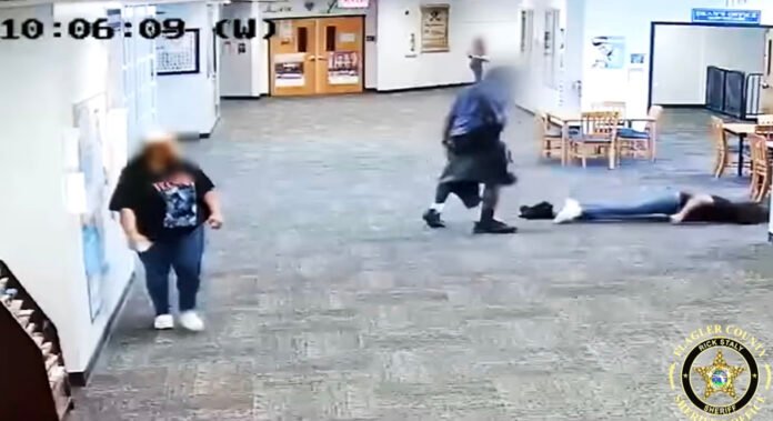 Police in Flagler County, Florida, say a 17-year-old student ambushed, then physically attacked a teacher’s aide that left her unconscious. Video from inside Matanzas High School shows the teenager kicking and stomping on the teacher’s aide’s body. People rush by to stop him and give aide to the victim. The student was placed in handcuffs and arrested. He now faces aggravated battery charges.