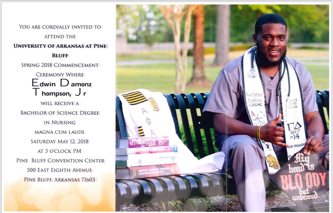 Edwin will be receiving a Bachelor of Science in Nursing, Magna Cum Laude honors, from the University of Arkansas at Pine Bluff on May 12, 2018 at 3 o’clock pm