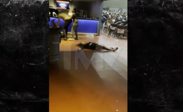 A vicious fight broke out at a Chris Brown concert Friday … and TMZ has obtained video of the VERY SCARY scene … a woman laid out unconscious on the ground while two men are going at it around her.