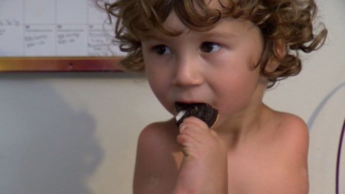 Because he was born without arms, William eats with his feet while sitting on a table. The boy’s mother, Alexis Bancroft, says the boy learned the technique in therapy.
