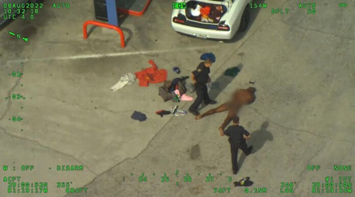 – A naked Florida man who was armed with a machete when he allegedly tried to steal another man’s clothes was arrested Monday morning at a DeLand gas station, according to the Volusia Sheriff’s Office.