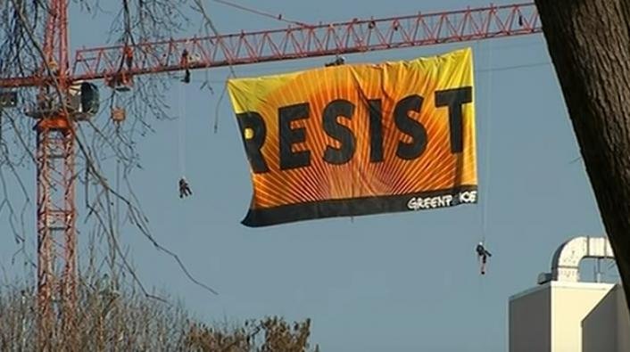 Protesters Hang “Resist” Sign Over White House