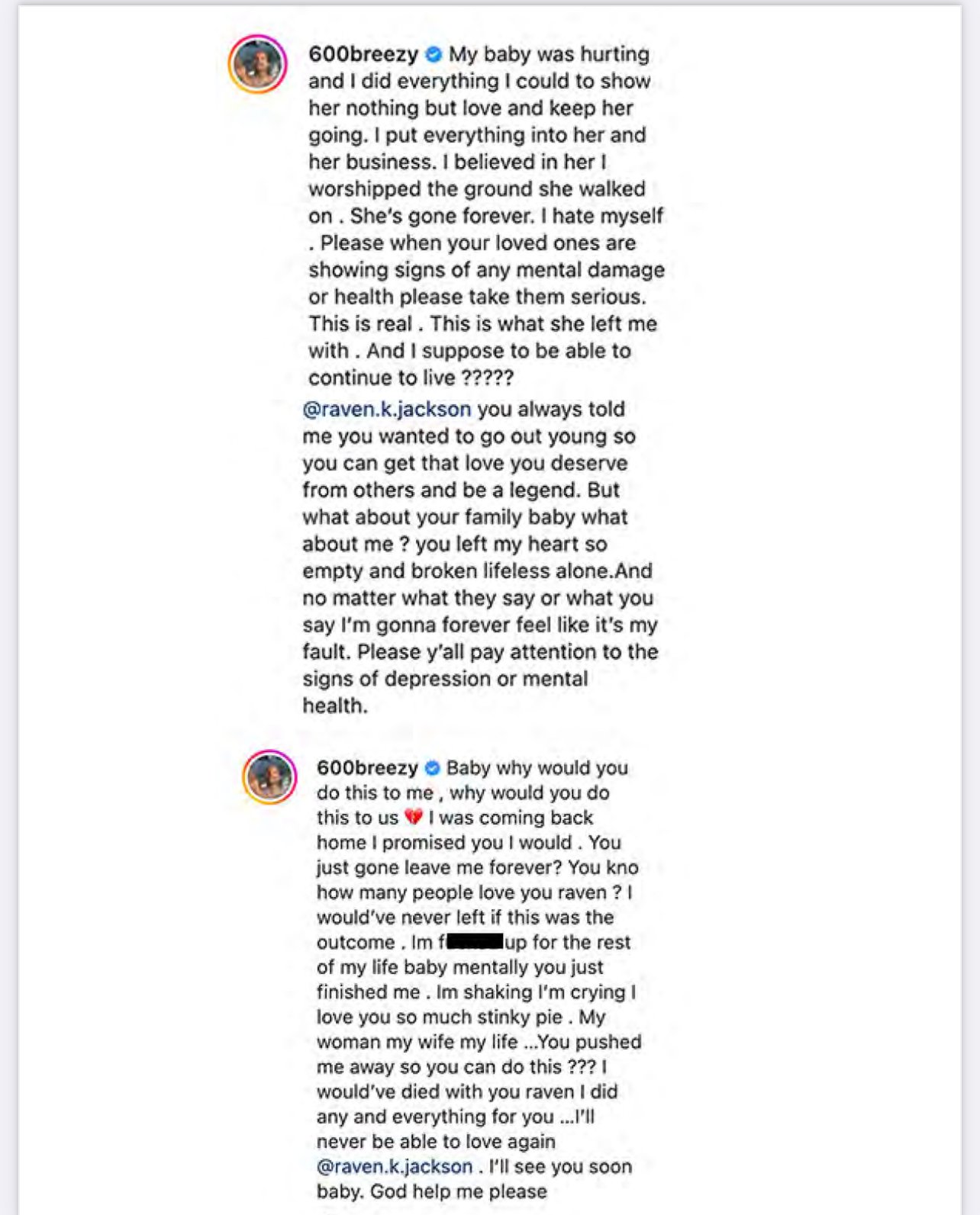 Rapper 600 BREEZY GF DEAD BY SUICIDE ‘Why Would You Do This To Us’