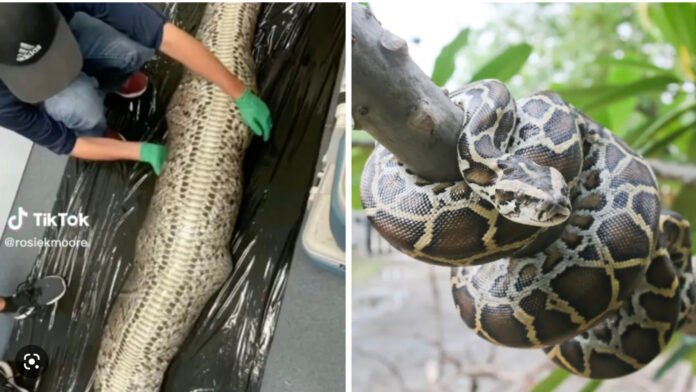 Rosie Moore, a geoscientist, posted a video to Instagram, showing the gator in the snake’s belly. It quickly went viral.