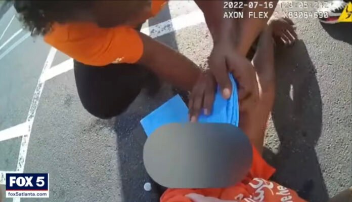 Security footage captures the fight break out at the Coweta County restaurant. The police officer’s body camera shows