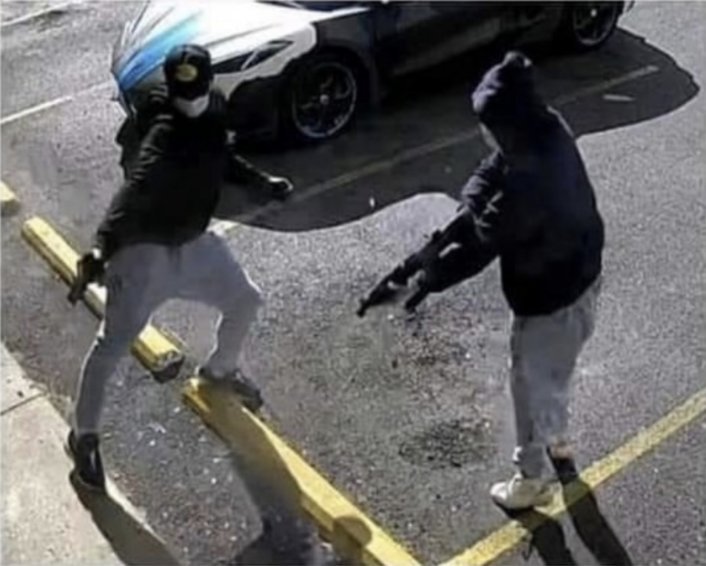 TMZ obtained surveillance stills from Wednesday’s shooting, showing that two men, almost entirely covered,